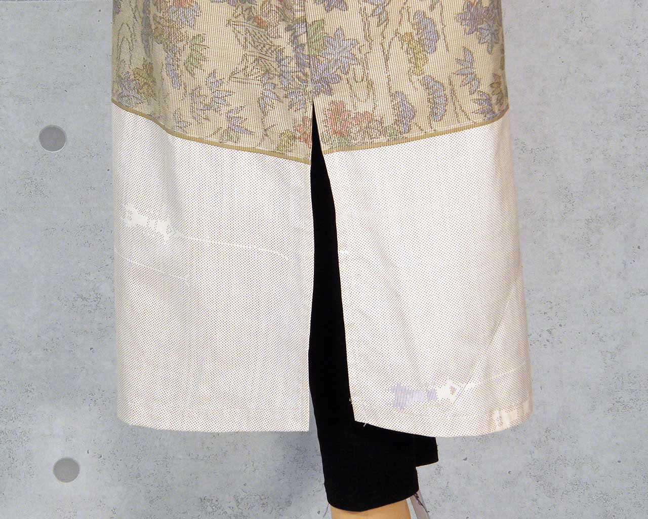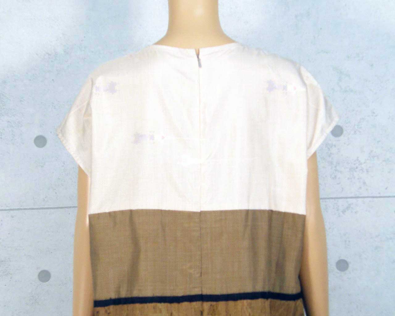 白大島紬 正絹 フレンチ袖のワンピース 両脇ポケット付